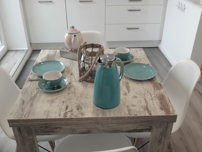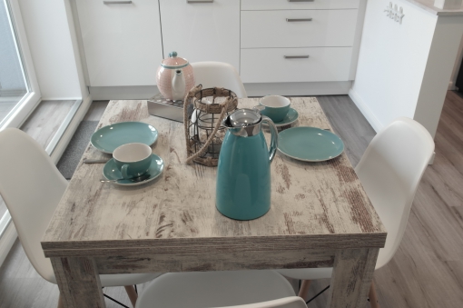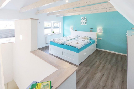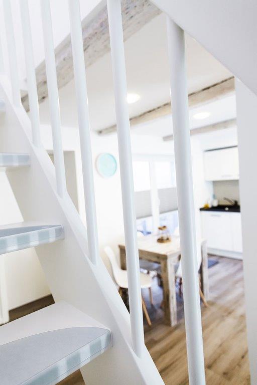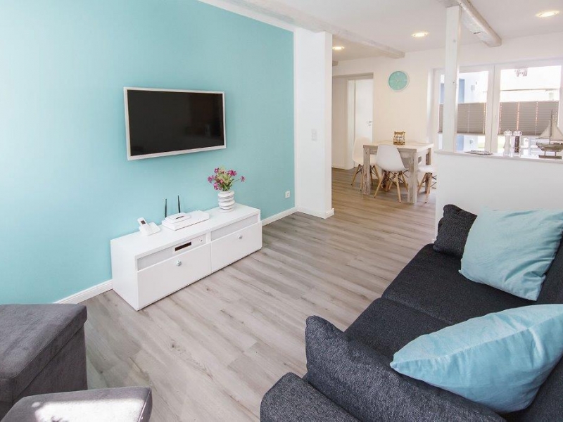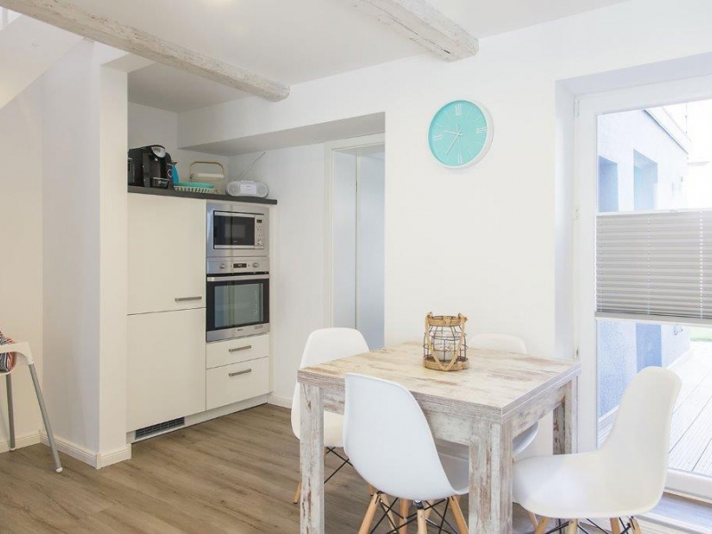 Das moderne und geschmackvolle eingerichtete Ferienhaus ist ca. 68 m² groß und erstreckt sich über 2 Ebenen. Im Erdgeschoß befinden sich der kombinierte Wohn-/Küchenbereich und das Badezimmer. Im Obergeschoß ist das Schlafzimmer. Der gemütliche Wohnbereich ist mit einer Couchgarnitur (umwandelbar zur Schlafcouch – 1,50 m x 2,00 m), TV-Gerät, DVD Player, Radio und CD- Player, sowie Telefon eingerichtet. Der direkt angrenzende offene Küchenbereich ist mit einem Herd mit Induktionsfeld, Backofen, Geschirrspülmaschine, Kühlschrank mit Gefrierfach, Wasserkocher, Toaster, Kaffeemaschine, Tassimo und Mikrowelle ausgestattet. Ein Esstisch lädt zu gemeinsamen Mahlzeiten ein. Das Badezimmer ist mit einer ebenerdigen Dusche und einem WC, sowie einem Radio eingerichtet. Über eine schmale, steile Treppe gelangen Sie in das Obergeschoß mit einem offenen Schlafraum. Der Schlafraum ist mit einem Doppelbett (1,80 m x 2,00 m –ohne Fußende, mit rückenfreundlichen Tempur- Matratzen), einem Kleiderschrank, einer Leseecke und einem TV-Gerät eingerichtet. Vom Schlafraum haben Sie Zugang zu einem großen Sonnenbalkon mit Gartenmöbeln und Sonnenschirm. Im Erdgeschoß haben Sie Zugang zum Garten mit einer großen Terrasse mit Gartenmöbeln und Grill. Alle Räume im Erdgeschoß sind mit einer Fußbodenheizung ausgestattet. Weitere Angaben: Bettwäsche, Handtücher und Endreinigung, sowie W-Lan sind im Preis inklusive. Keine Haustiere. Das Hafensternchen ist ein Nichtraucher- Ferienhaus. Ein kostenfreier eigener Parkplatz ist auf Wunsch in 650 Meter Entfernung verfügbar.